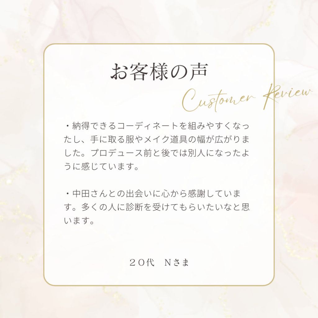 “美スタイル トータルプロデュース” お客様の声 2026-01-13 | コメントはまだありません ビフォー→アフターのマインドと外見がまるで変わり、喜びを実感しておられました。✨ ピンクオーラ✨がときめきや幸福感で包まれておりました。✨🍀 ウエディングフォト撮りが最幸の写真、確実です!📸 ご感想、ありがとうございます。 未分類